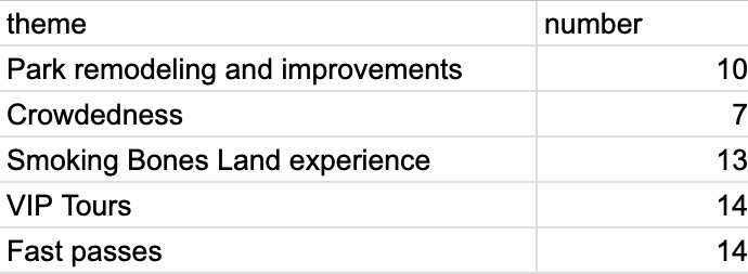 "themes": ["Queues for rides were bad", "Fast track problems", "Staff were rude"]