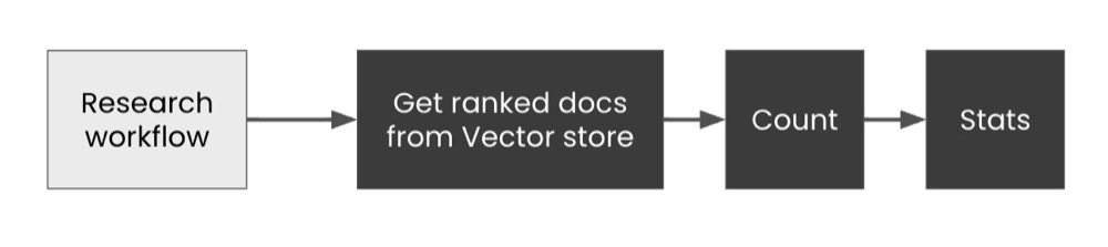 We have our research workflow. We want to build out the workflow to get ranked documents from our semantic database, count the closest matches, and then generate stats, perhaps inserting the output back into our spreadsheet.