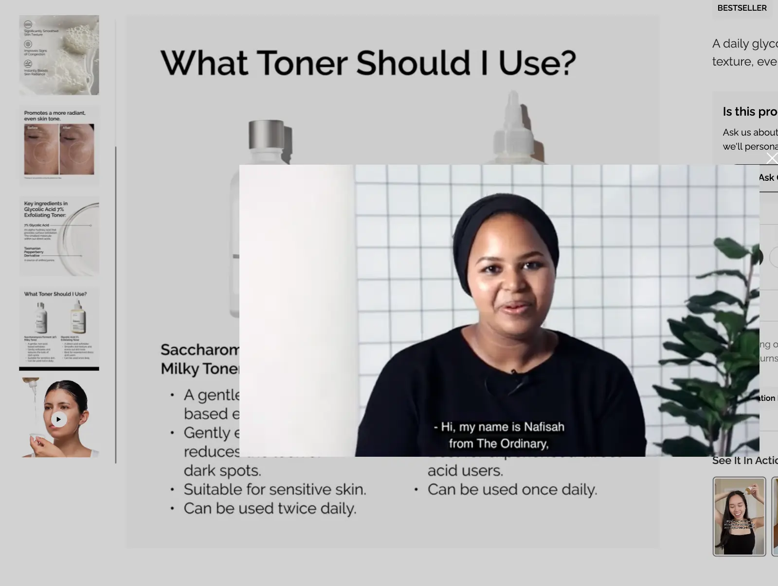There are exceptions. The earlier example of The Ordinary had a two-minute video for their toner. For complex products or users who like to do extensive research, test longer videos. Just watch your load times; The Ordinary hosts theirs on YouTube to reduce loading times.